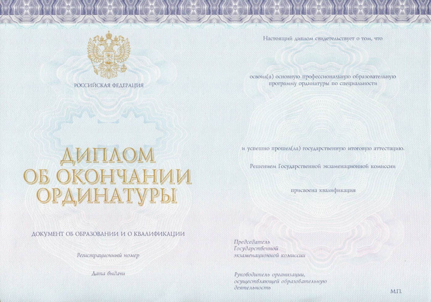 Диплом об окончании ординатуры 2016 — 2025 годы 19 990 руб.   КУПИТЬ