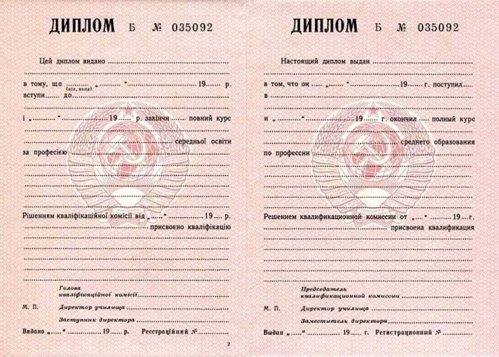 Купить Диплом ПТУ СССР с 1980 по 1994